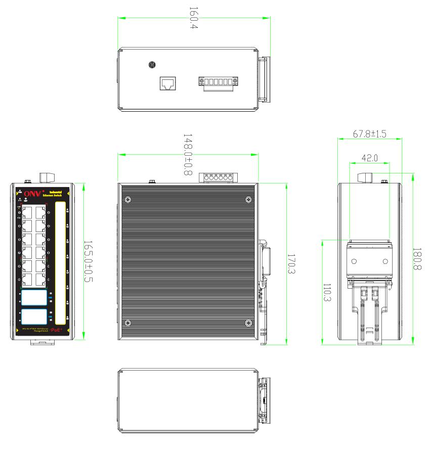 ◇ 8個10/100/1000Base-T RJ45端口支持PoE供電,滿足各種工業(yè)領(lǐng)域各種場景PoE供電的需求。