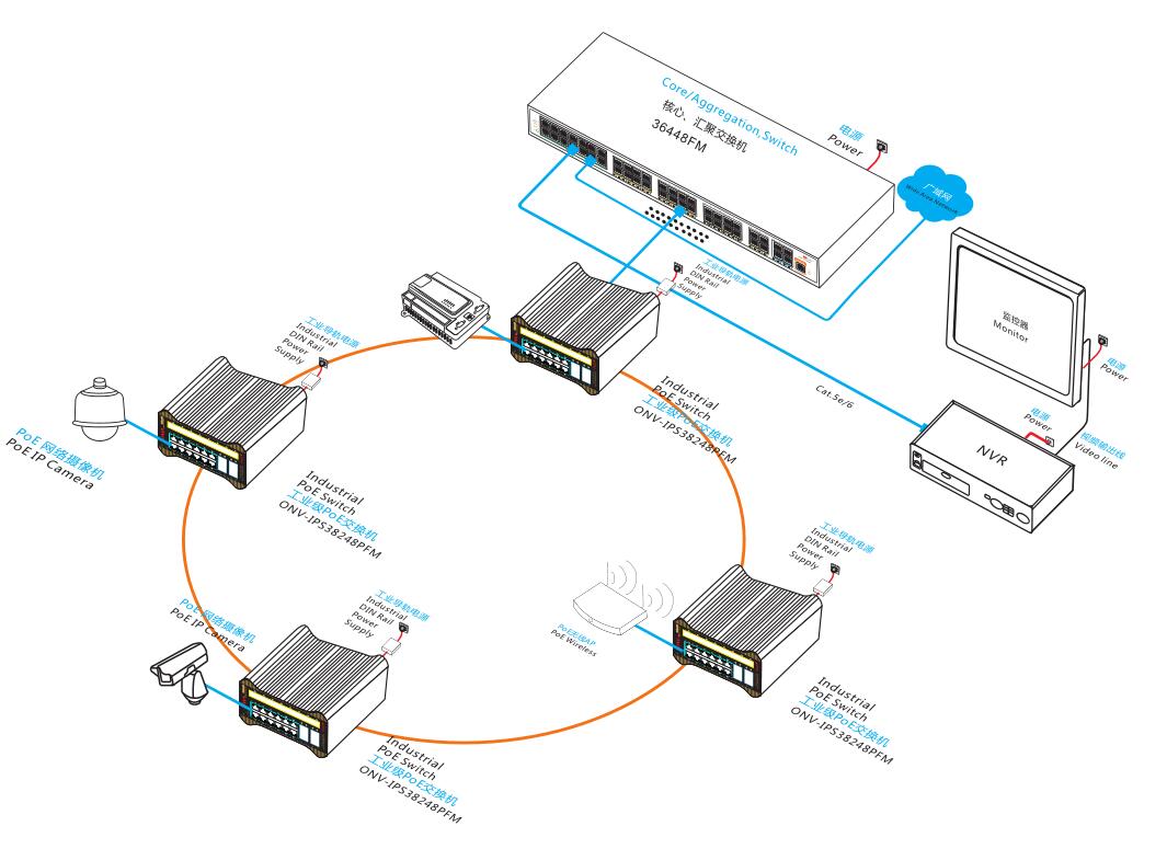 ONV-IPS38248PFM系列是ONV自主研發(fā)的萬兆上聯(lián)三層網(wǎng)管工業(yè)POE光纖交換機(jī),支持12個10/100/1000Base-T RJ45端口+8個100/1000Base-X SFP光口插槽+4個1/10G萬兆SFP+光口插槽,其中1-8端口支持IEEE 802.3af/at標(biāo)準(zhǔn)PoE供電,單端口PoE功率達(dá)30W。作為PoE供電設(shè)備,能自動檢測識別符合標(biāo)準(zhǔn)的受電設(shè)備并通過網(wǎng)線為其供電。可通過網(wǎng)線為無線AP、網(wǎng)絡(luò)攝像頭、網(wǎng)絡(luò)電話機(jī)、工業(yè)傳感器等POE終端設(shè)備供電,滿足對高密度PoE供電有需求的網(wǎng)絡(luò)環(huán)境,適合智能交通、軌道交通、電力行業(yè)、礦業(yè)開采、冶金及綠色能源建設(shè)等工業(yè)場景組建經(jīng)濟(jì)高效、穩(wěn)定、可靠的通信網(wǎng)絡(luò)。