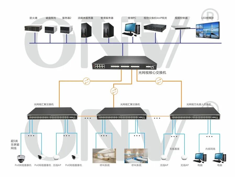 項(xiàng)目采用光網(wǎng)視工業(yè)級(jí)PoE交換機(jī)架構(gòu),為醫(yī)療系統(tǒng)實(shí)現(xiàn)安防系統(tǒng)“零感知升級(jí)”