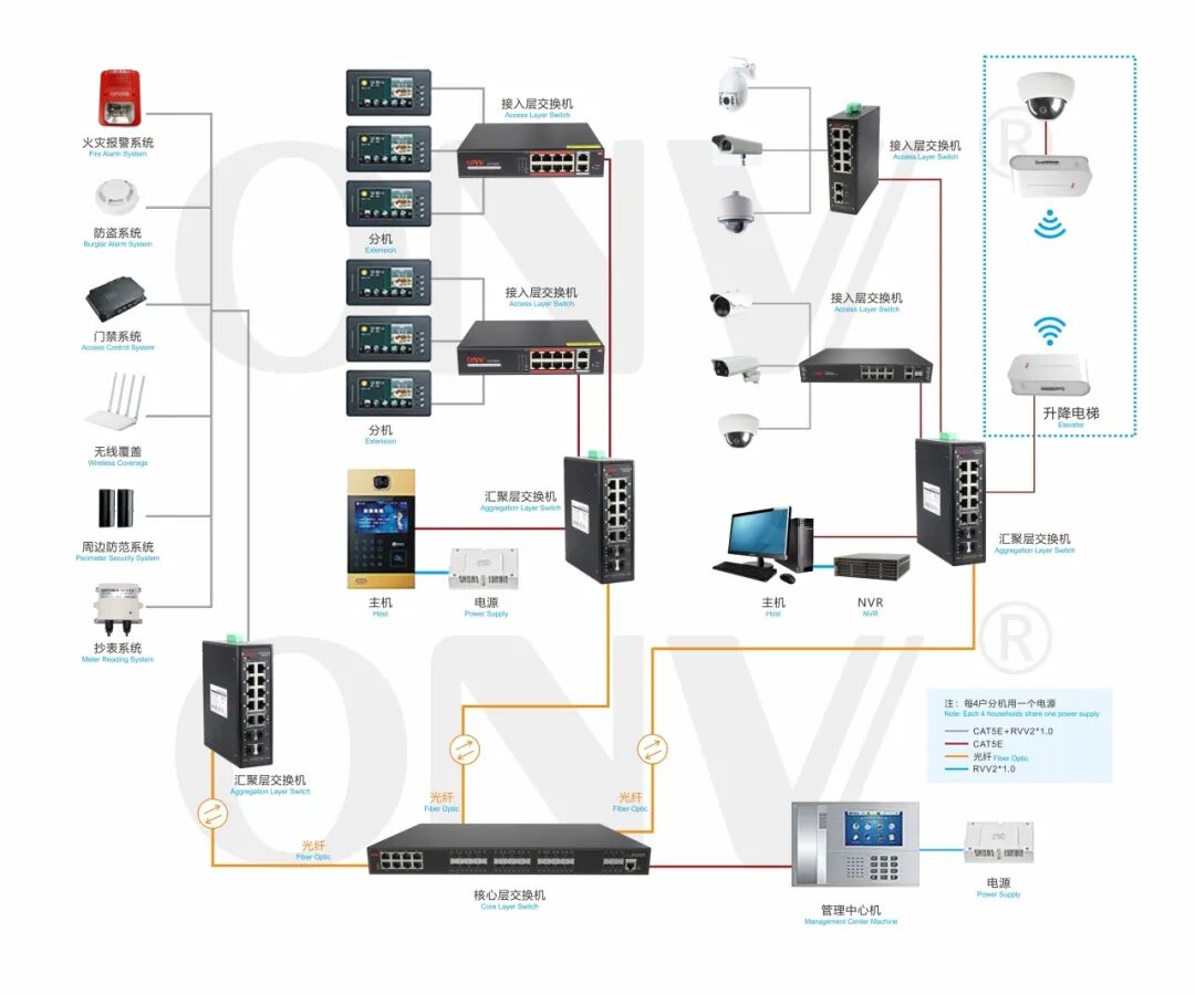 多業(yè)務(wù)承載:安防監(jiān)控、門禁對講、公共Wi-Fi等多系統(tǒng)需要融合承載