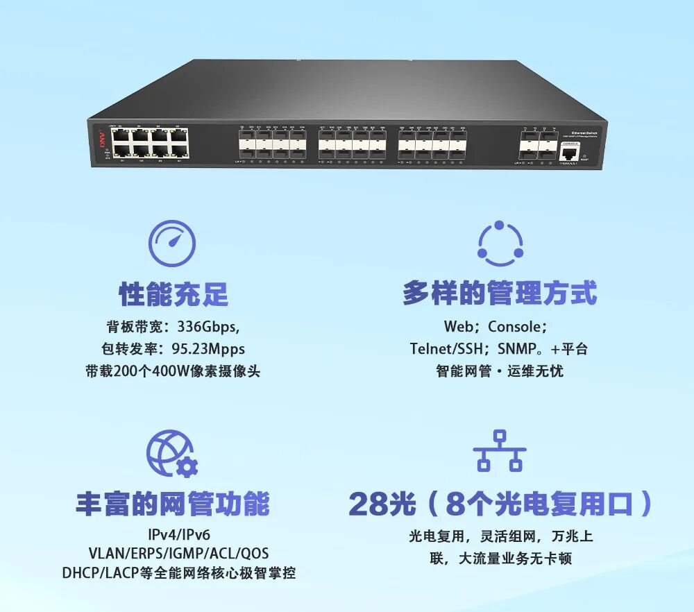 ? 24光口+8電口+4萬兆光口靈活配置,滿足高密度接入需求