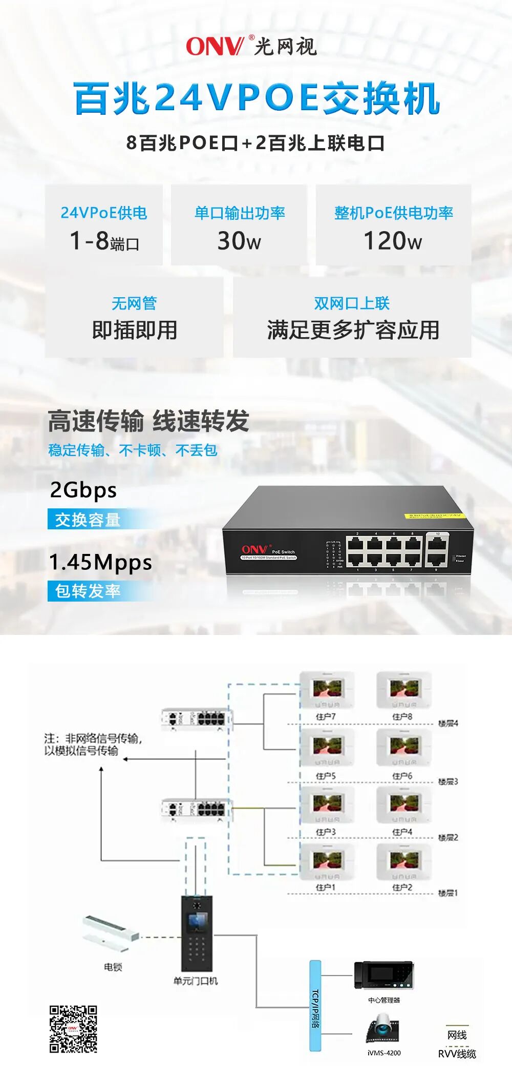 ? 8百兆PoE端口+2百兆上聯(lián)電口,滿足終端接入需求