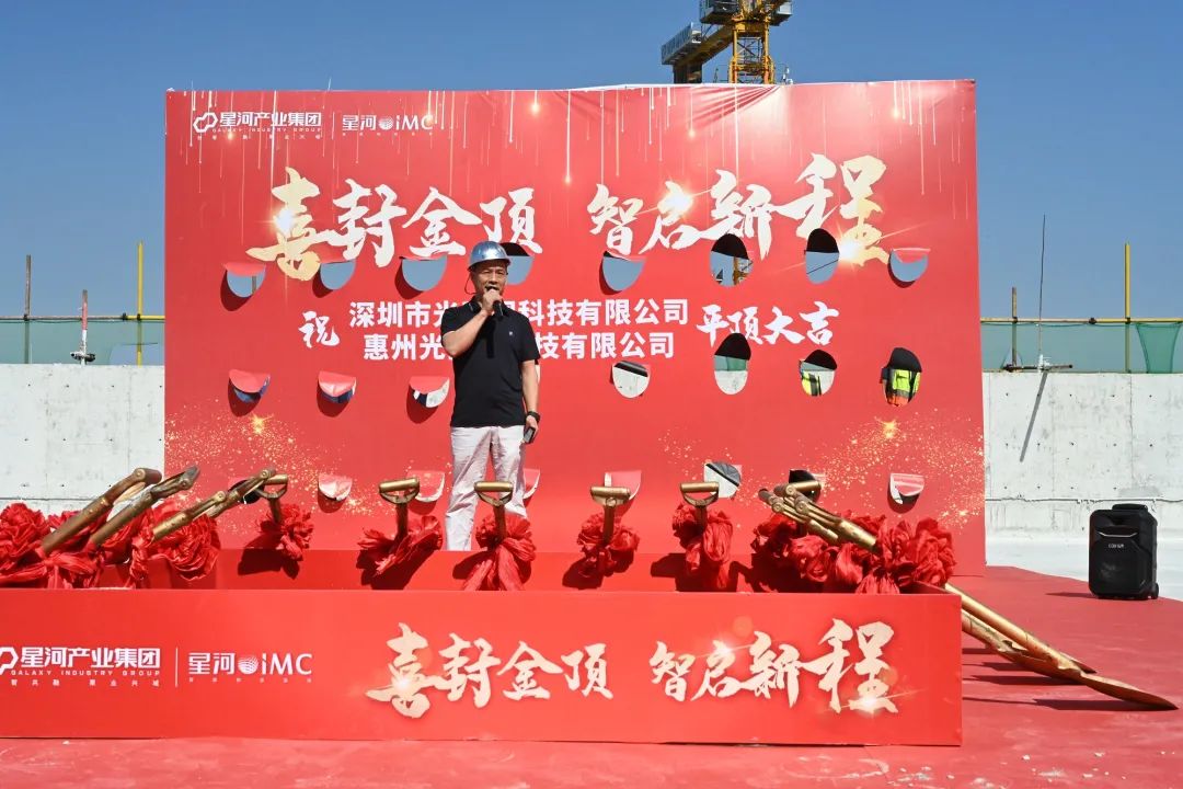 光網(wǎng)視總裁吳啟華先生為封頂儀式致辭。吳總表示很榮幸站在這里與大家一起為深圳光網(wǎng)視集團(ONV)惠州大廈舉行平頂儀式,此刻是多年來的夢想見證。特別感謝多年來員工的愛戴、客戶的支持、供應(yīng)商的理解,同時感謝光網(wǎng)視大樓項目星河服務(wù)團隊和建設(shè)者讓我們有機會站在這里。我們一定會永續(xù)光網(wǎng)視的輝煌,書寫更加和諧的企業(yè)文化,造就共贏的嶄新局面!