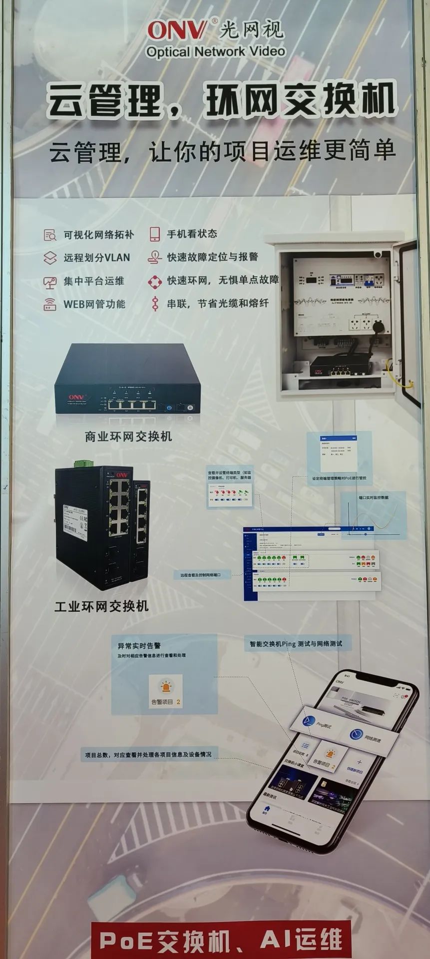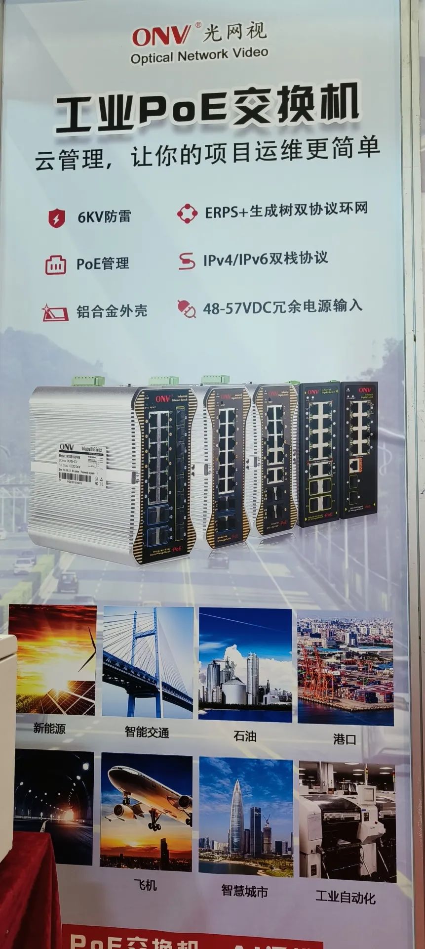 ONV光網(wǎng)視作為行業(yè)知名的老品牌,此次展會(huì)重磅展示了匯聚型核心交換機(jī)、前端POE交換機(jī)等產(chǎn)品在智慧高速公路中的應(yīng)用解決方案,在展會(huì)現(xiàn)場(chǎng),吸引了眾多參展者駐足參觀和交流。