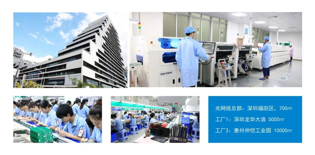 深圳市光網(wǎng)視科技有限公司(ONV),成立于2003年,簡(jiǎn)稱光網(wǎng)視,立意為“光纖、網(wǎng)絡(luò)、視頻”,公司現(xiàn)有員工人數(shù):±360人,研發(fā)中心與營(yíng)銷(xiāo)總部設(shè)立于深圳CBD福田區(qū)車(chē)公廟泰然大廈700+㎡,龍華大浪生產(chǎn)基地5000+㎡,惠州仲愷高新區(qū)生產(chǎn)基地10000+㎡,一個(gè)中心兩個(gè)制造基地。