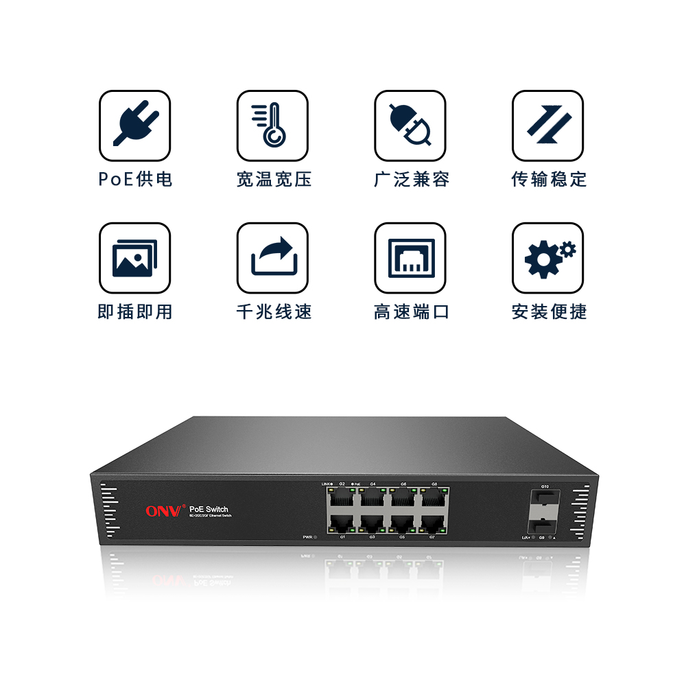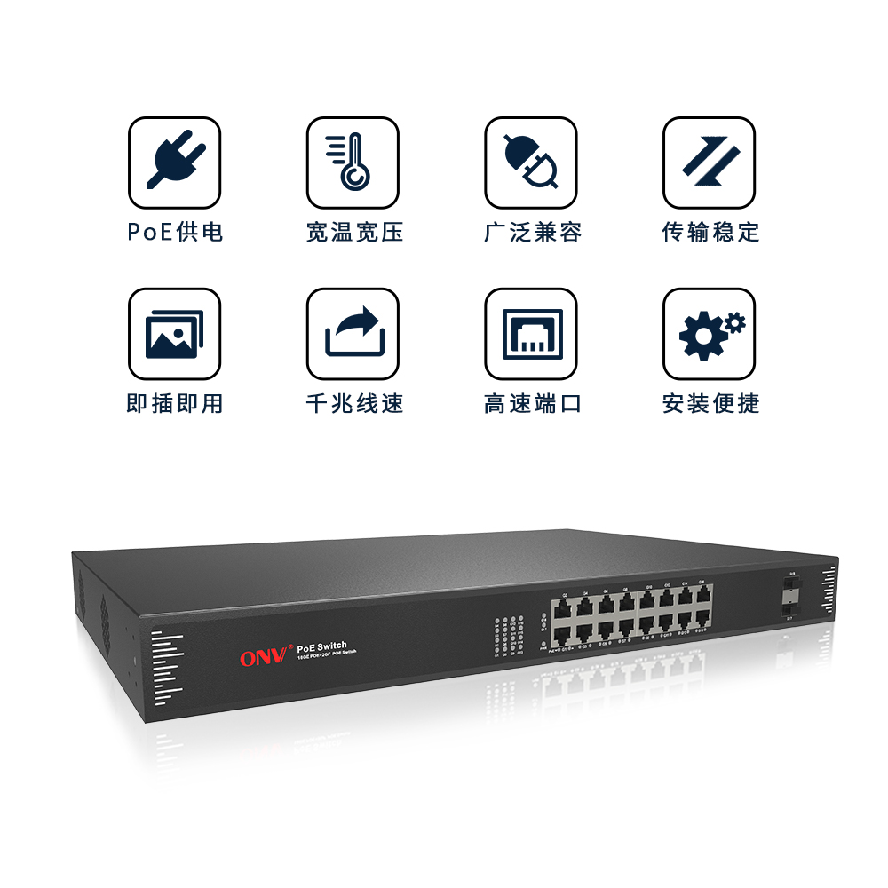 為保證監(jiān)控圖像高清高質(zhì)量,系統(tǒng)使用2光8電千兆POE交換機全千兆接入,所有端口支持無阻塞線速轉(zhuǎn)發(fā),傳輸流暢。交換機主機低功耗、無風(fēng)扇靜音設(shè)計,鍍鋅鋼材金屬外殼,散熱優(yōu)良,保證穩(wěn)定運行。采用ONV自主研發(fā)的電源,高冗余設(shè)計,提供長久穩(wěn)定PoE電力輸出,保證24小時穩(wěn)定。